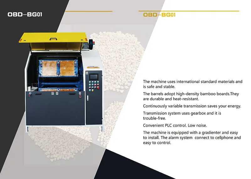 Le système de transmission utilise une boîte de vitesses et il est sans problème. Contrôle PLC pratique. Faible bruit. La machine est équipée d'un gradateur et facile à installer. Le système d'alarme se connecte au téléphone portable, facile à contrôler. Un plus grand baril et plus d'espace pour éviter les différences sur les applications & améliorent l'efficacité du polissage. La luminosité est importante.